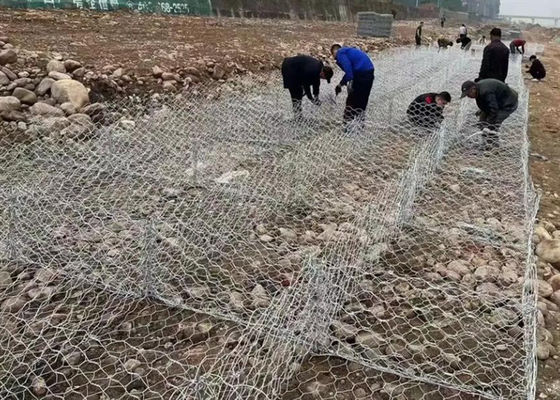 Stärke:Stahldraht-Sechseckengitter hat Festigkeit und Flexibilität, um Kräften durch Wasser- und Erdmassen standzuhalten,und die durchlässige Natur des Gabions erlaubt es, einen Großteil dieser Energie zu absorbieren und zu zerstreuen.Dies ist bei Küstenschutzinstallationen deutlich, wo Gabionstrukturen lange nach dem Ausfall einer massiven starren Struktur wirksam bleiben.Das doppelt verdrehte hexagonale Netz wird sich nicht lösen, wenn es geschnitten wird..