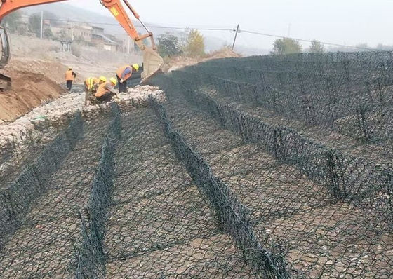 Stärke:Stahldraht-Sechseckengitter hat Festigkeit und Flexibilität, um Kräften durch Wasser- und Erdmassen standzuhalten,und die durchlässige Natur des Gabions erlaubt es, einen Großteil dieser Energie zu absorbieren und zu zerstreuen.Dies ist bei Küstenschutzinstallationen deutlich, wo Gabionstrukturen lange nach dem Ausfall einer massiven starren Struktur wirksam bleiben.Das doppelt verdrehte hexagonale Netz wird sich nicht lösen, wenn es geschnitten wird..